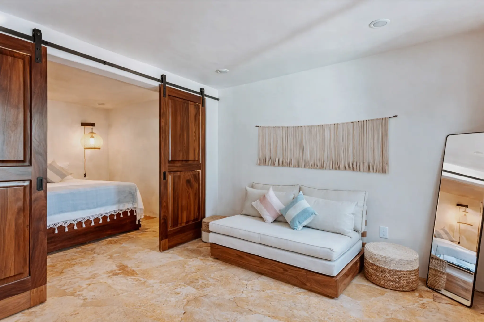 ✨ Spacious one-bedroom suite with shared patio access and boho-chic details
