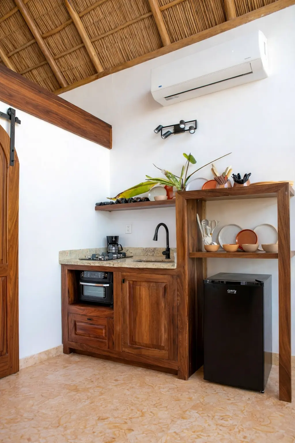🛏️ Airy palapa loft with king bed & artisan desk, plus private king bedroom and sofa bed in the living area