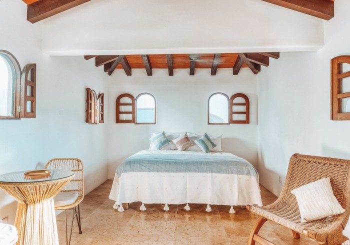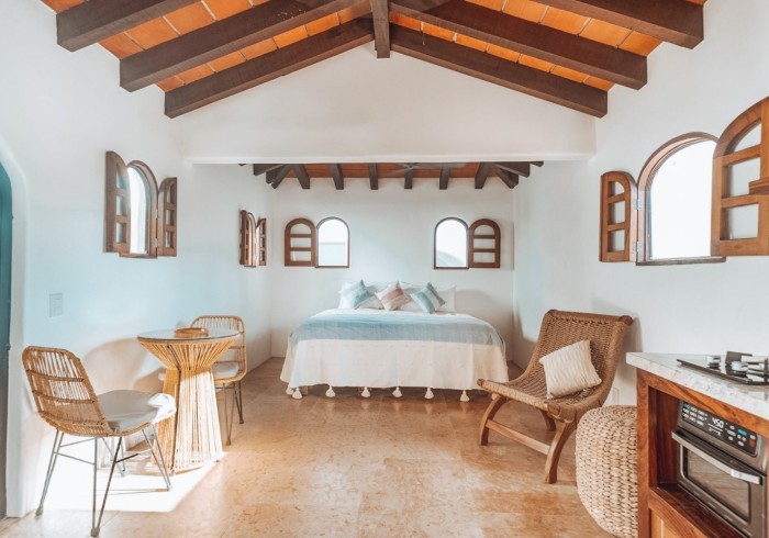 Guests enjoy complimentary wellness rituals âincluding a sauna and cold plungeâwith optional yoga and Pilates for deeper balance. Capturing the surf-townâs spirit, this intimate studio provides a soulful base for creativity, relaxation, and authentic coastal living along Mexicoâs western seaboardâan inspired choice for those seeking a quiet escape at one of the best boutique hotels in Sayulita.
